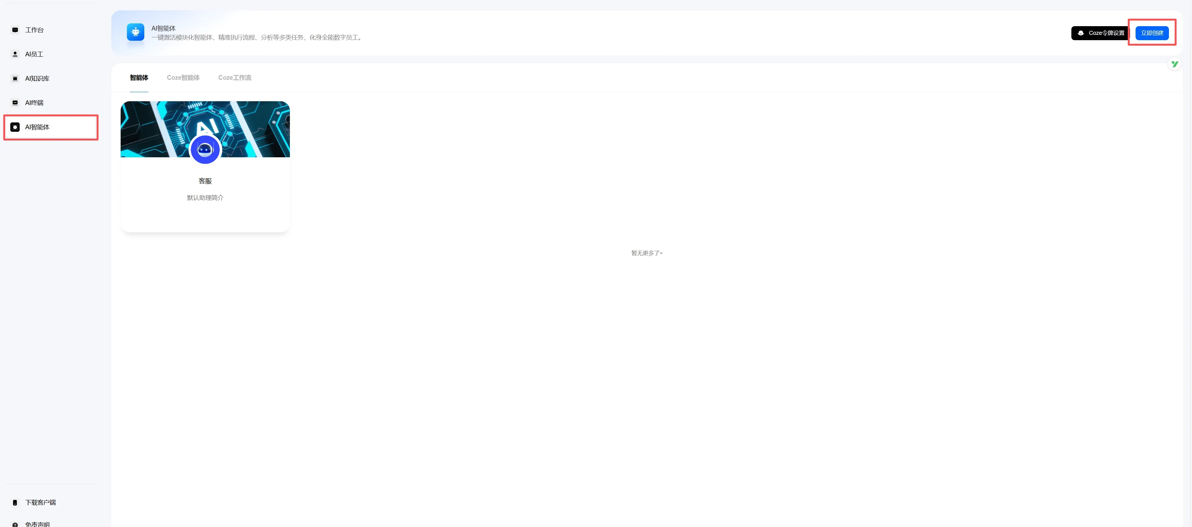 - 找到AI智能体,创建机器人