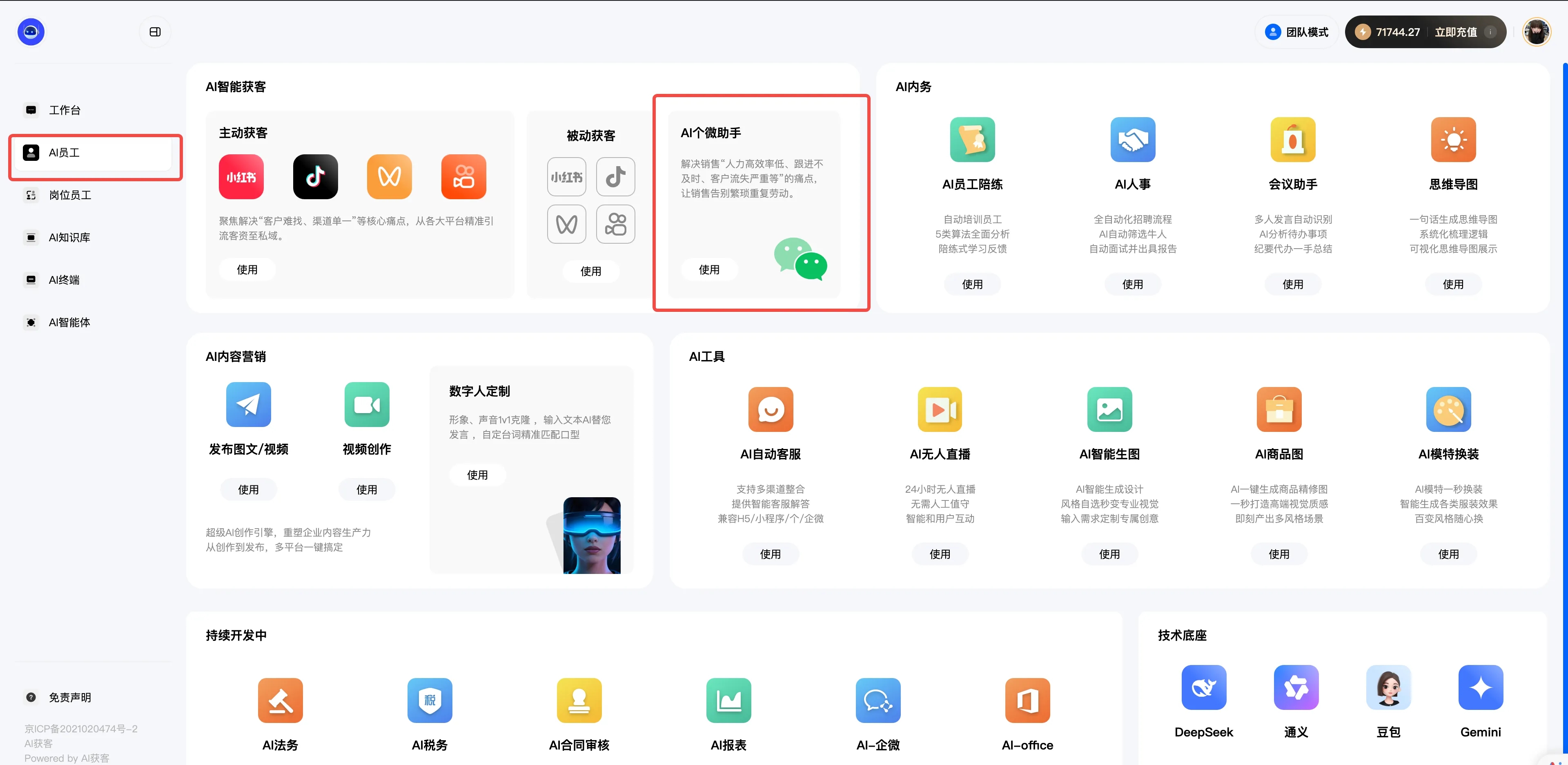 1.打开pc端找到个AI销售点击使用