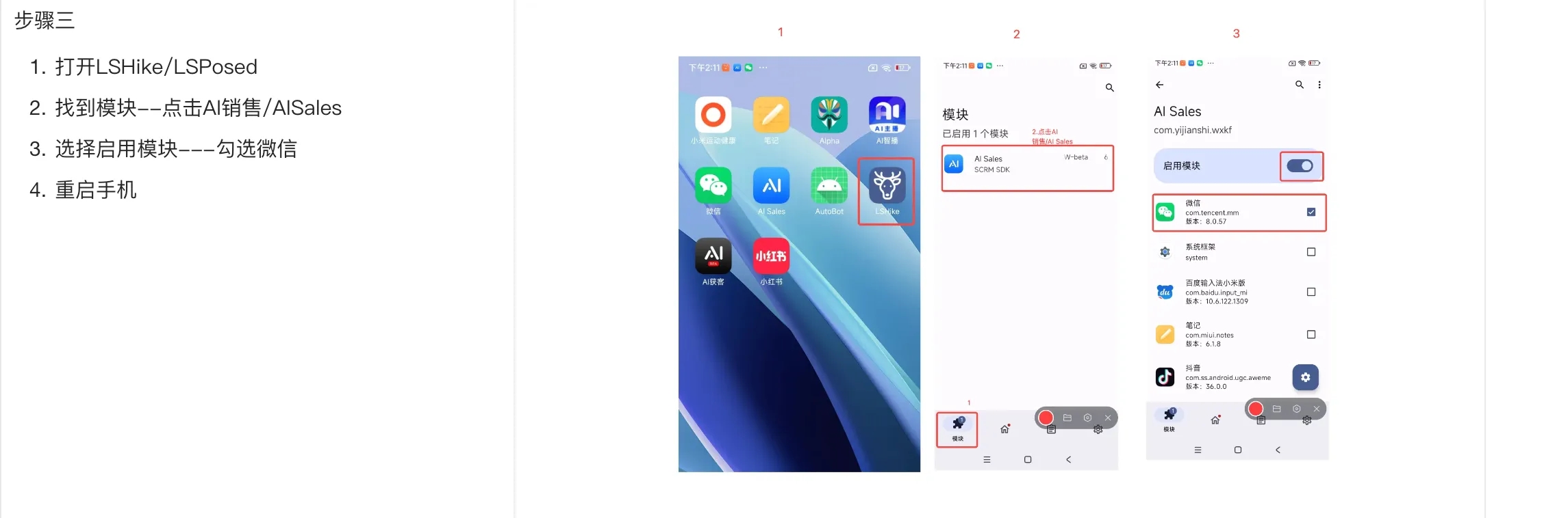 目录 搜索 展开 首页目录系统入手指南(电脑观看最佳)一、功能介绍及配置AI手机软件介绍设置手机权限开启手机常亮二、手机相关功能使用AI获客矩阵获客教程视频号获客开启之旅视频号获客问题AI手机所有问题AI终端绑定问题AI销售AI销售如何使用AI销售绑定问题三、系统其他功能使用 24小时自动任务执行AI会议纪要AI知识库教程 AI智能体智能体coze智能体coze工作流AI数字人 AI陪练AI人事AI思维导图AI美工 暂无相关搜索结果! 阅读次数:7 本文档使用 MinDoc 发布 AI销售绑定问题 AI销售绑定问题1.设备未找到需联系站长录入设备才可以使用2.设备离线/或者绑定成功后头像闪烁1.连续点击红框处,在点击断开-连接2.查看两个红框处的域名(可以询问站长域名)是否正确3.查看是否hook作者:江苏华睿云科数字科技有限公司 创建时间:2026-01-26 10:55最后编辑:admin2 更新时间:2026-01-27 21:41