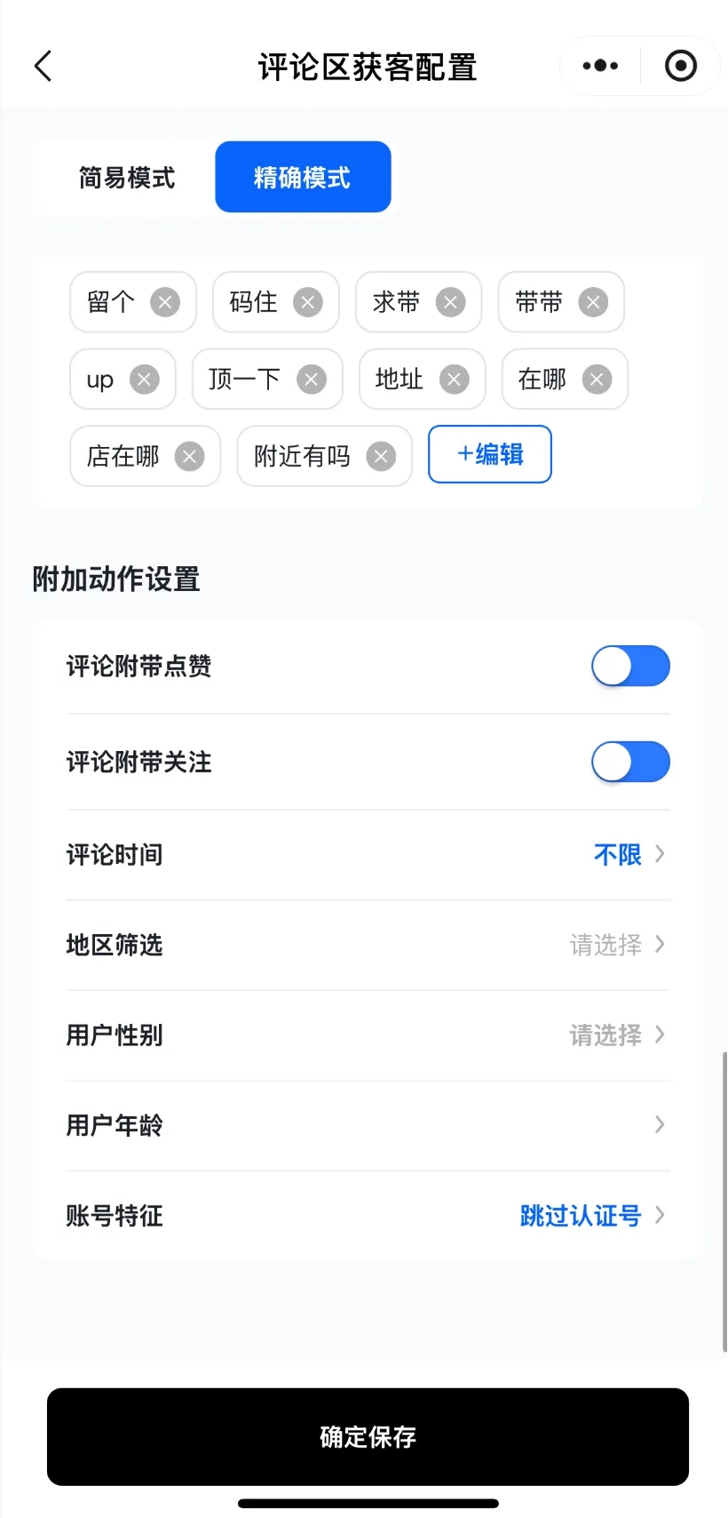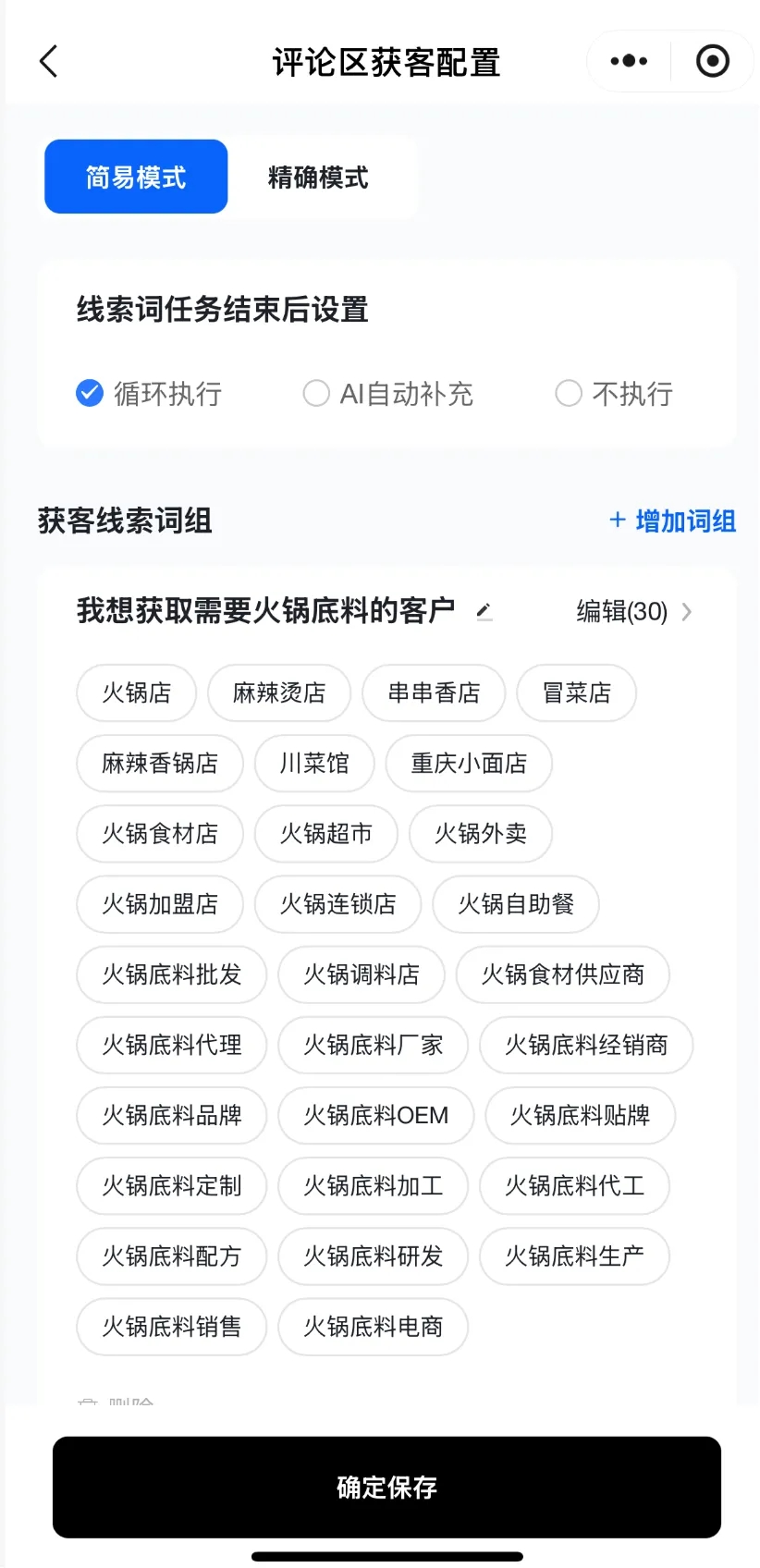 评论区获客有两个模式,简易模式和精确模式,做了智能去重工作。