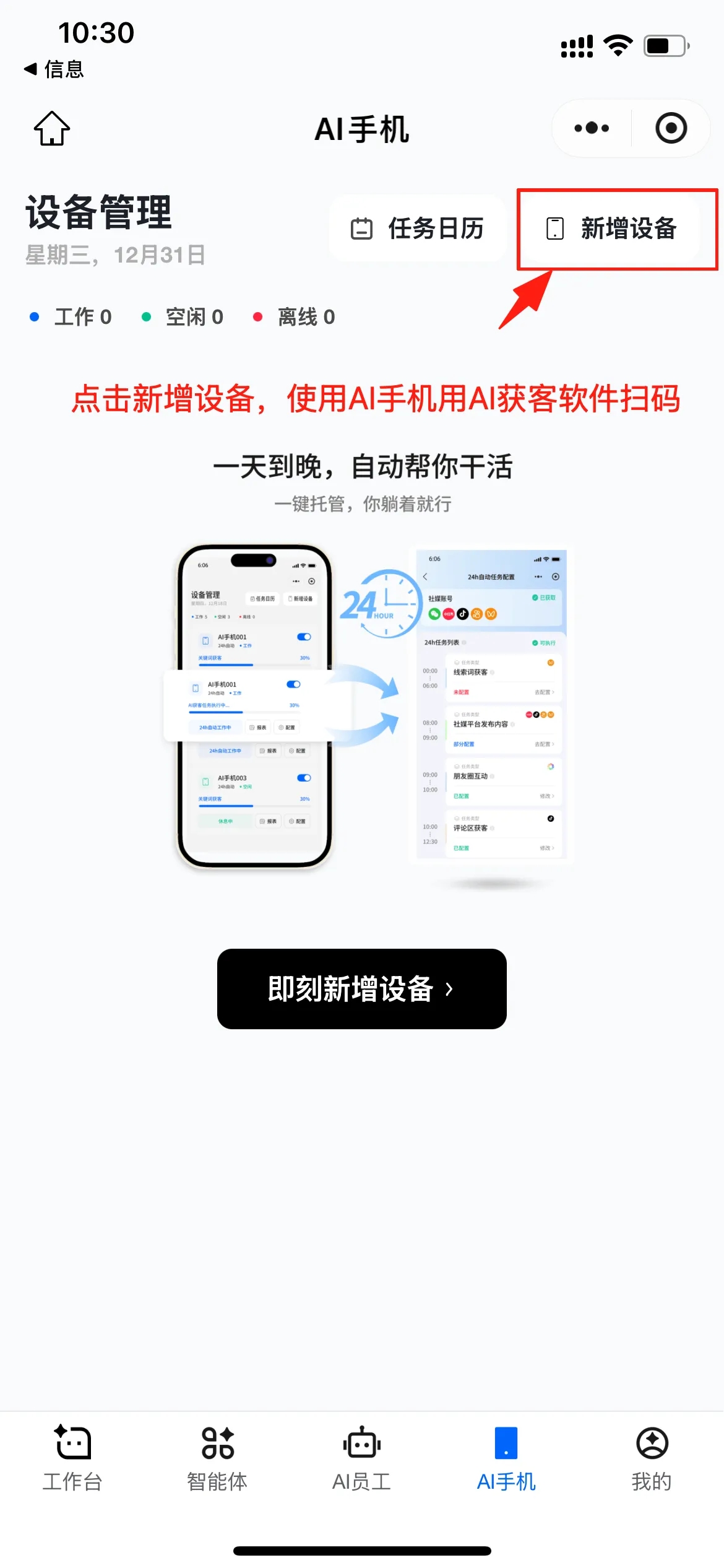 3.在pc系统中AI个微组手完成设备添加,以确保微信信息正常获取。