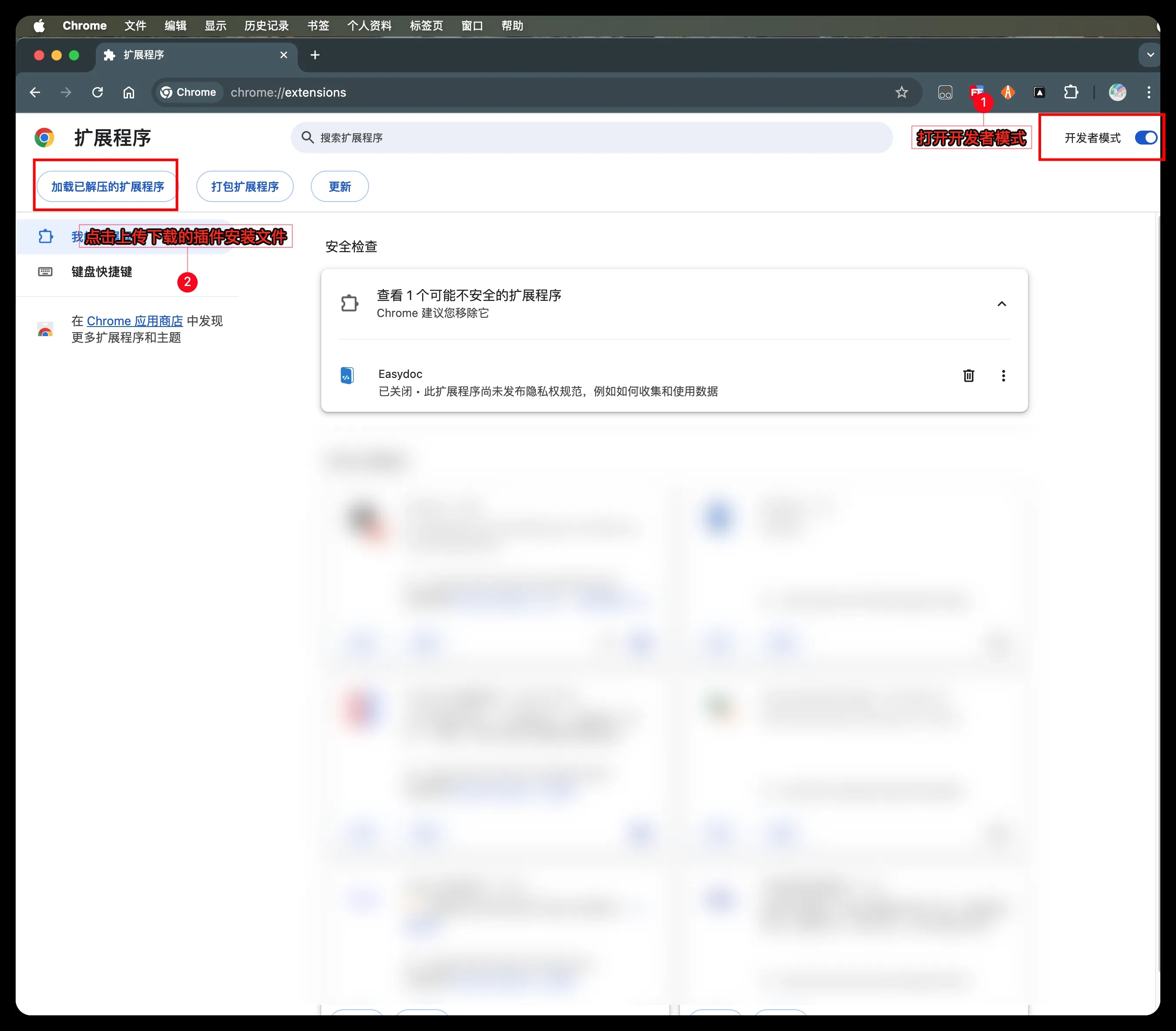 然后点击【加载已解压的扩展程序】按钮上传文件