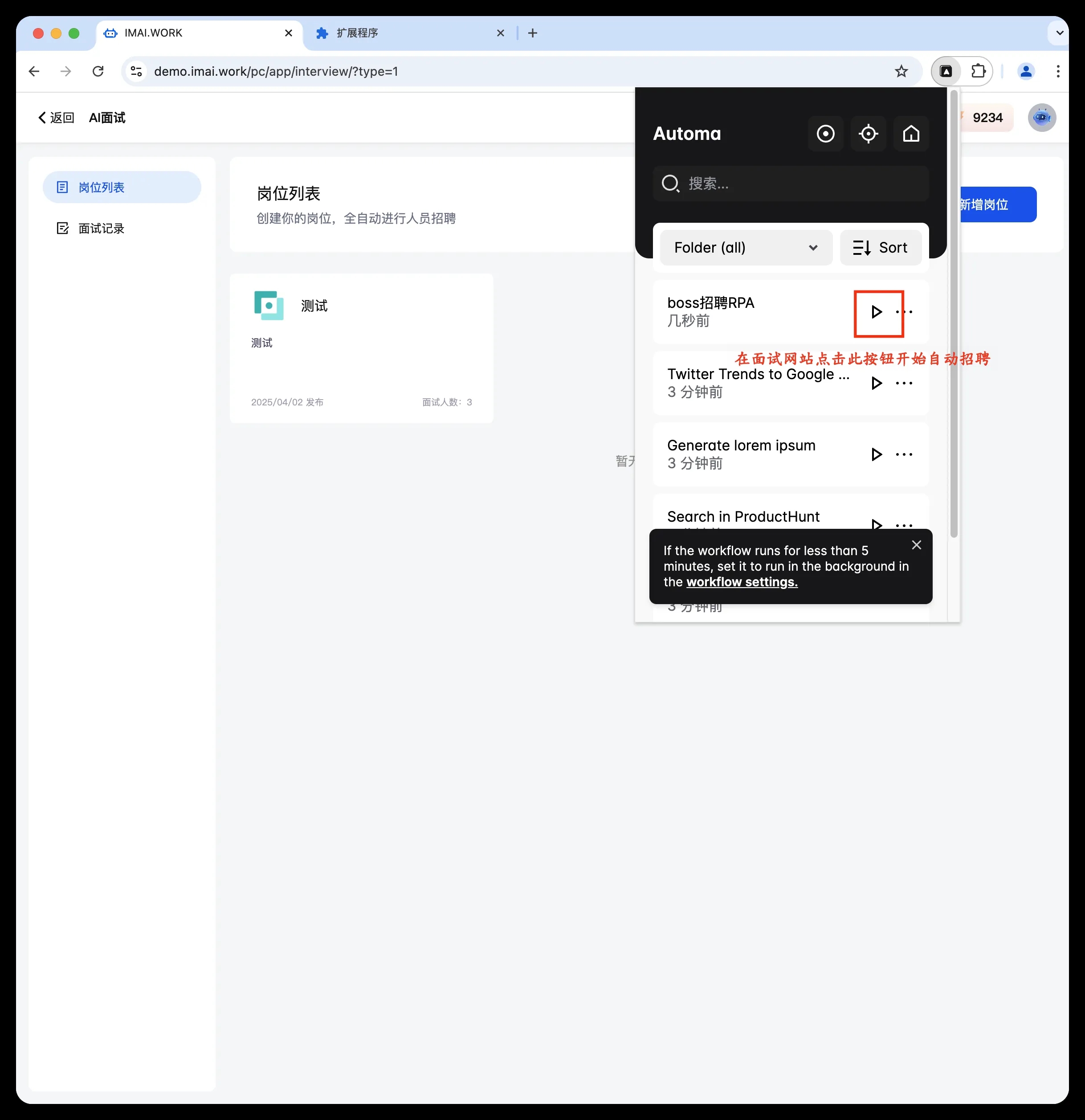5.下载完成后,在谷歌打开AI面试,设置自动回复内容,启动rpa首次使用引导