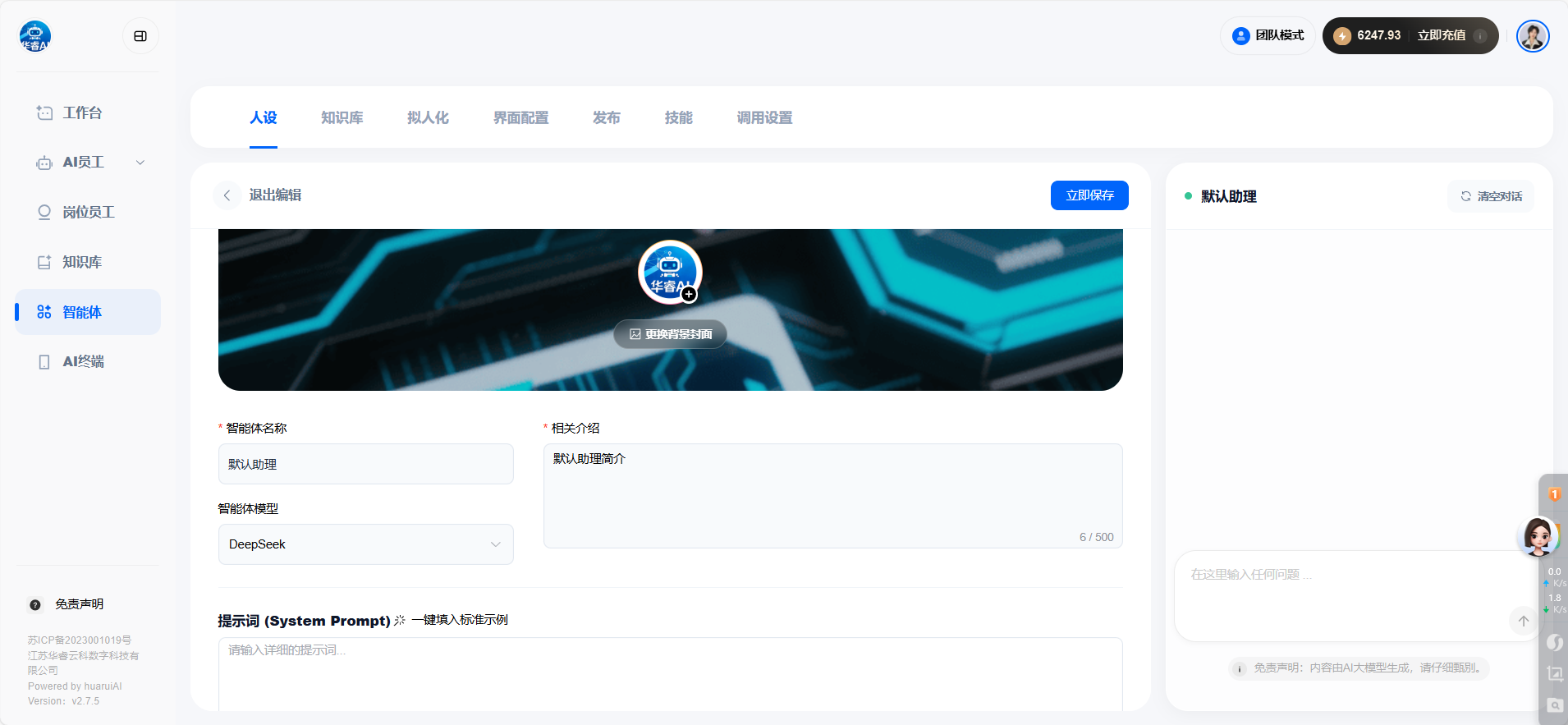 目录 搜索 展开 首页目录一、功能介绍及配置AI手机软件介绍设置手机权限开启手机常亮二、手机相关功能使用AI获客 视频号获客开启之旅AI手机所有问题AI终端绑定问题AI销售AI销售如何使用 AI销售绑定问题 三、系统其他功能使用 24小时自动任务执行AI会议纪要AI知识库教程AI智能体智能体 coze智能体coze工作流 AI数字人 AI陪练AI人事 AI思维导图AI图片 暂无相关搜索结果! 阅读次数:6 本文档使用 MinDoc 发布 智能体 智能体1.创建智能体2.填入信息—点击保存3.设置您的知识库–点击保存作者:江苏华睿云科数字科技有限公司 创建时间:2026-01-26 11:22最后编辑:江苏华睿云科数字科技有限公司 更新时间:2026-02-11 16:41