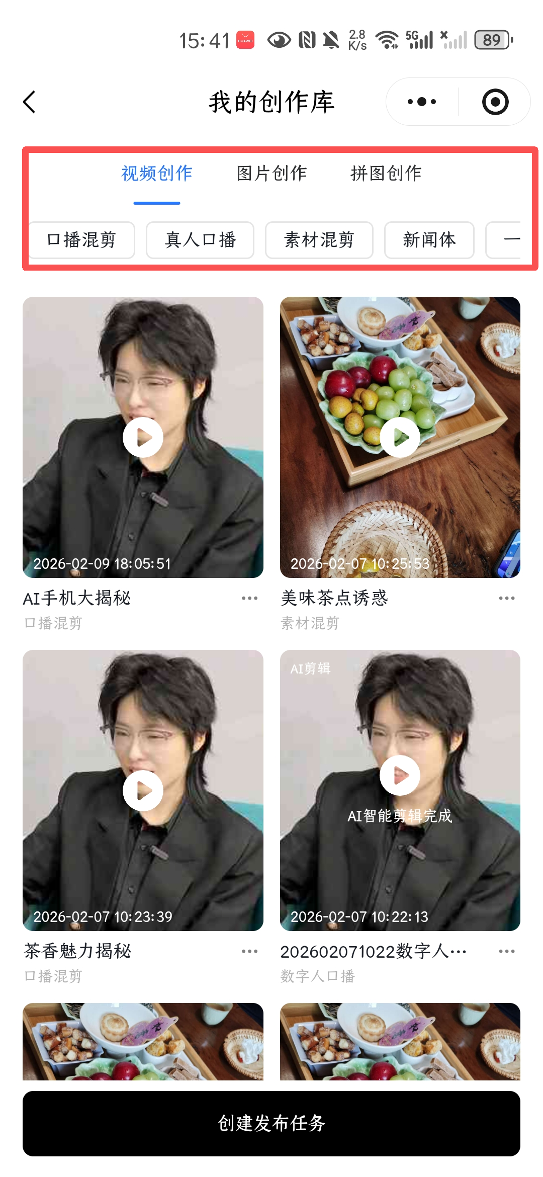 这里可以选择创作的视频