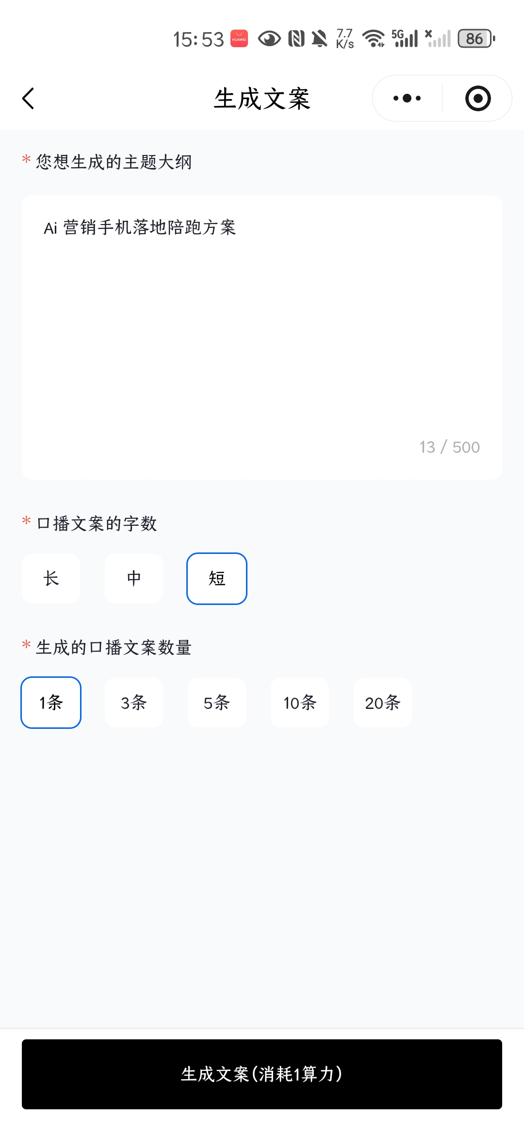 填写文案(可以使用ai 生成文案)