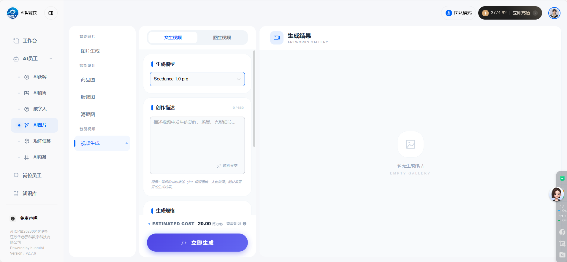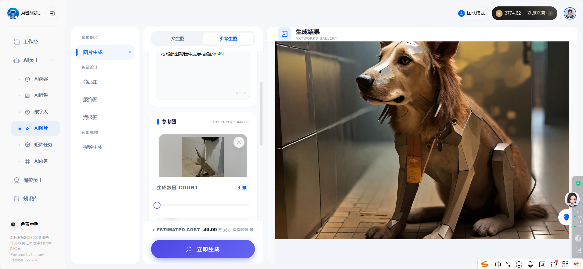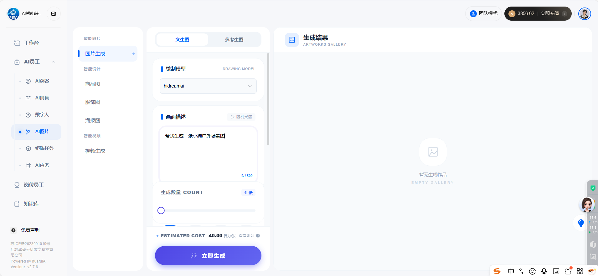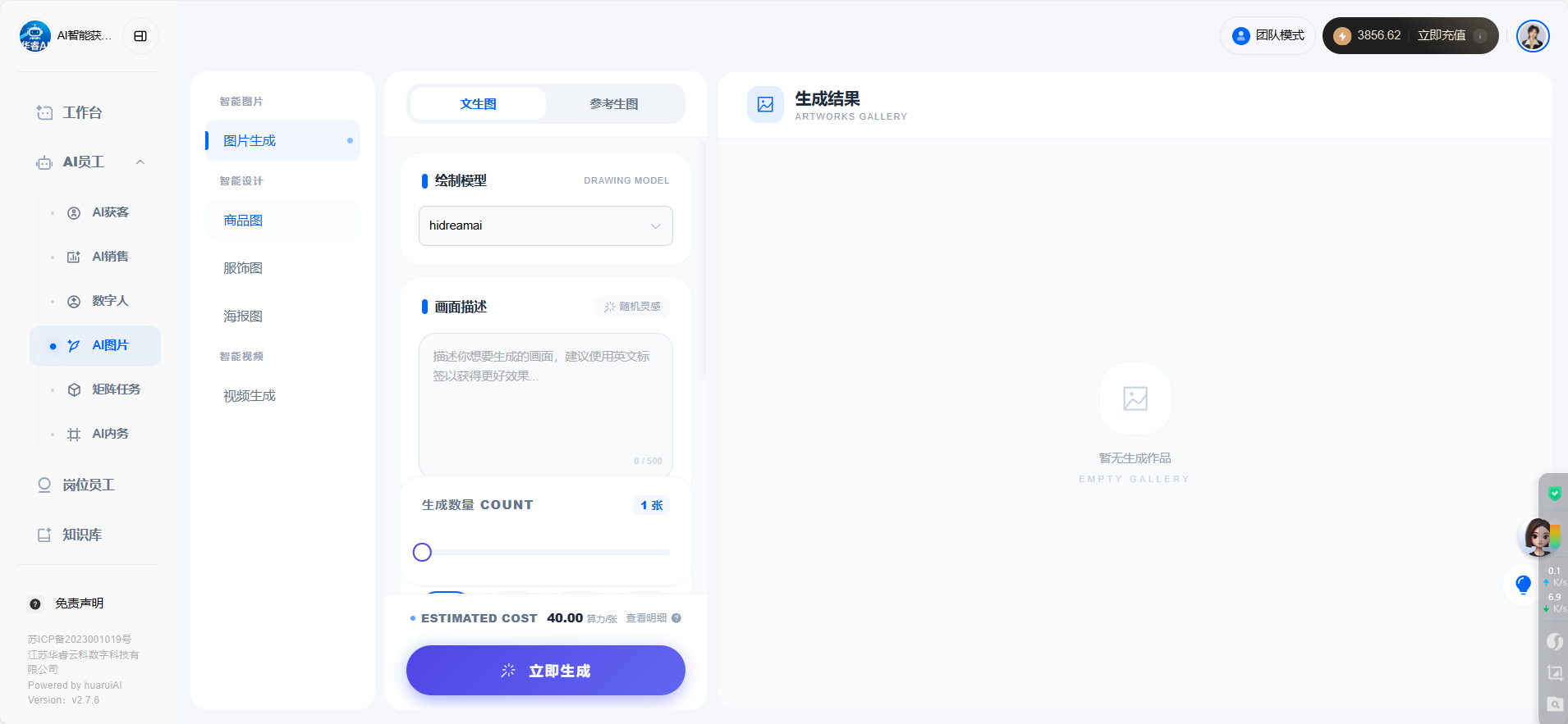 点击【AI员工】点击【AI图片】点击【图片生成】