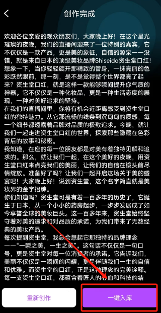 2.AI会自动生成文字,点击“一键入库”
