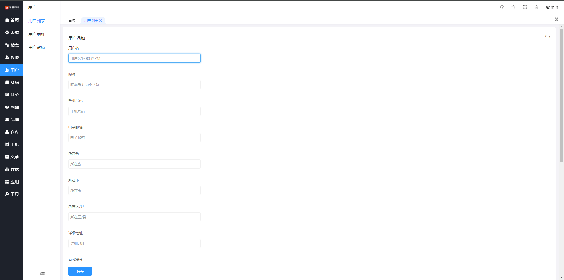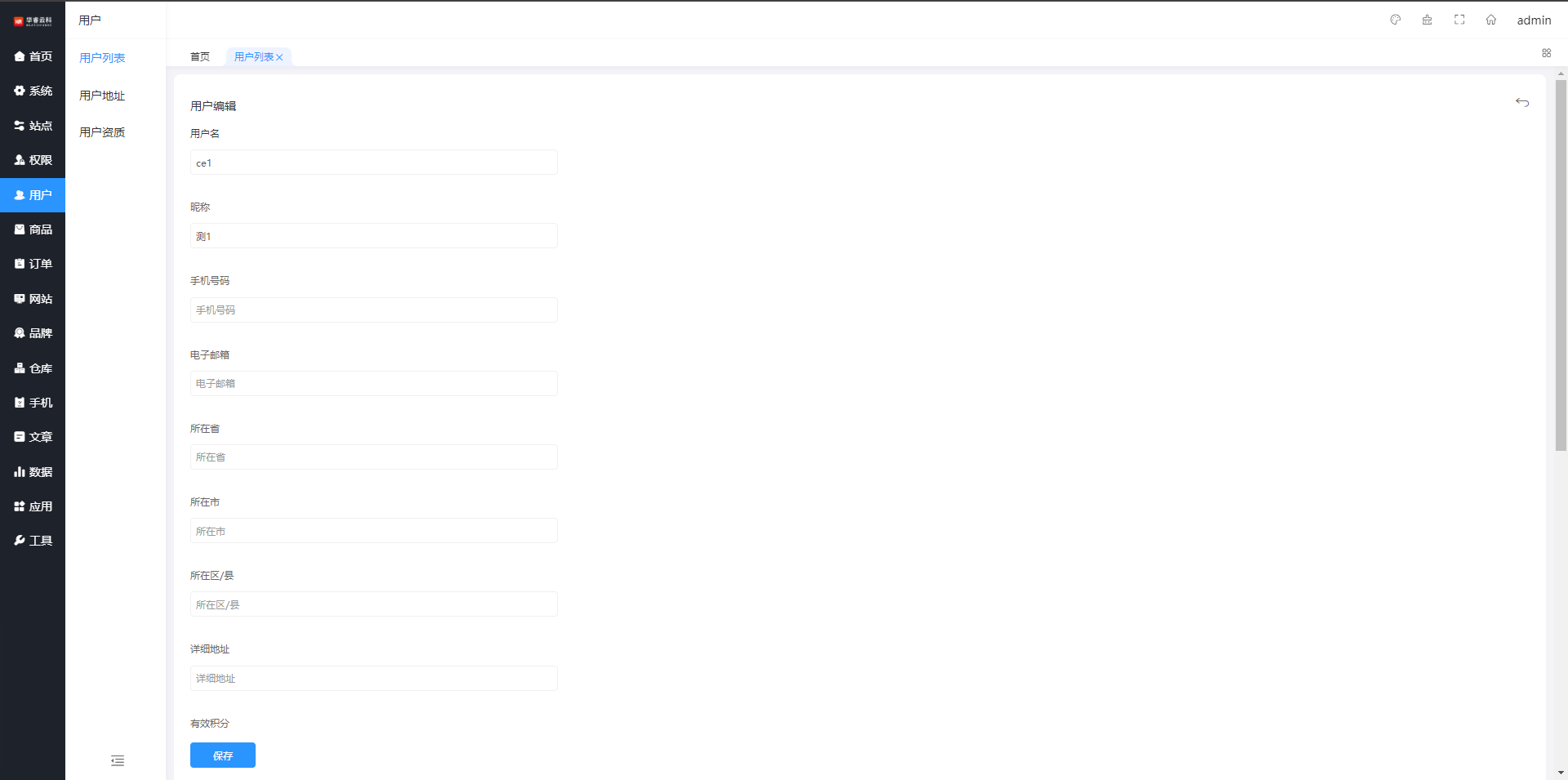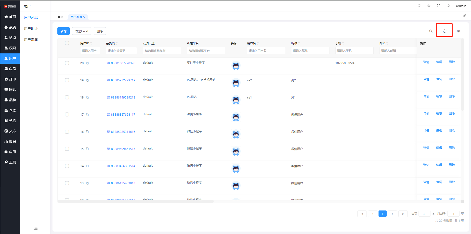 用户列表默认展示30条数据,超过30条数据会分页展示,呈现商城所有用户信息