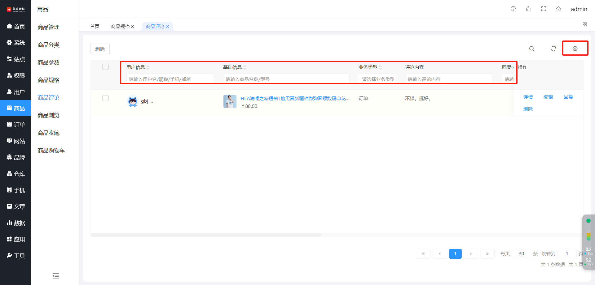 商品评论 回复 编辑