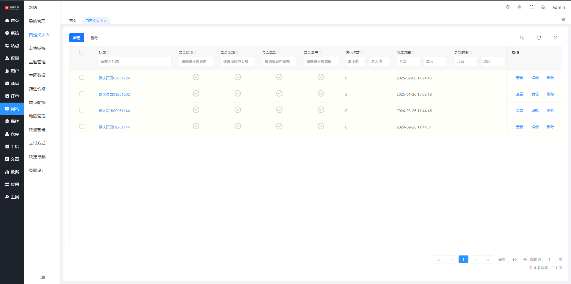 添加、编辑、删除、查询、批量删除自定义模板页面
