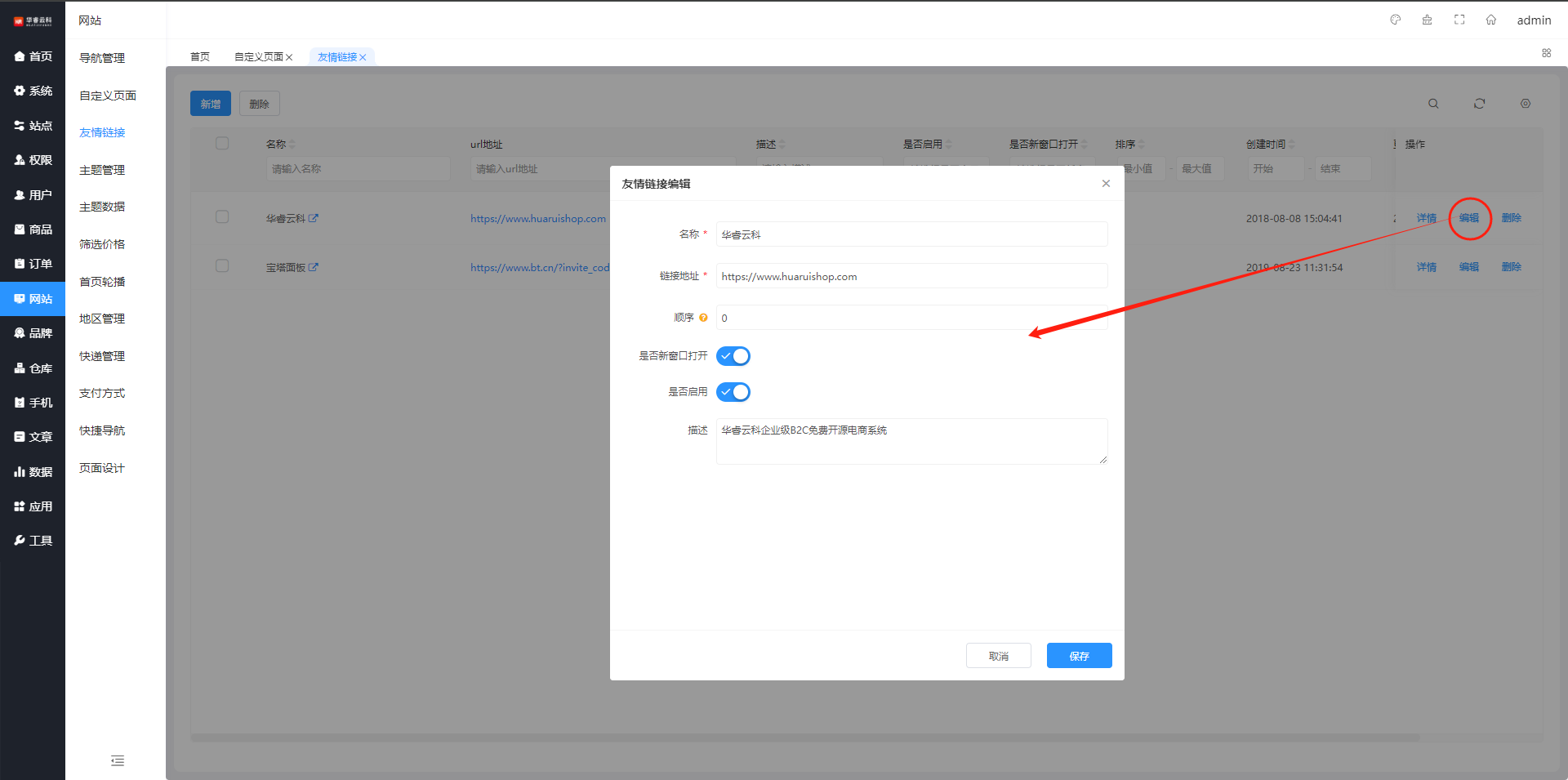 - 后台商品管理列表/新增/编辑(门店关联)