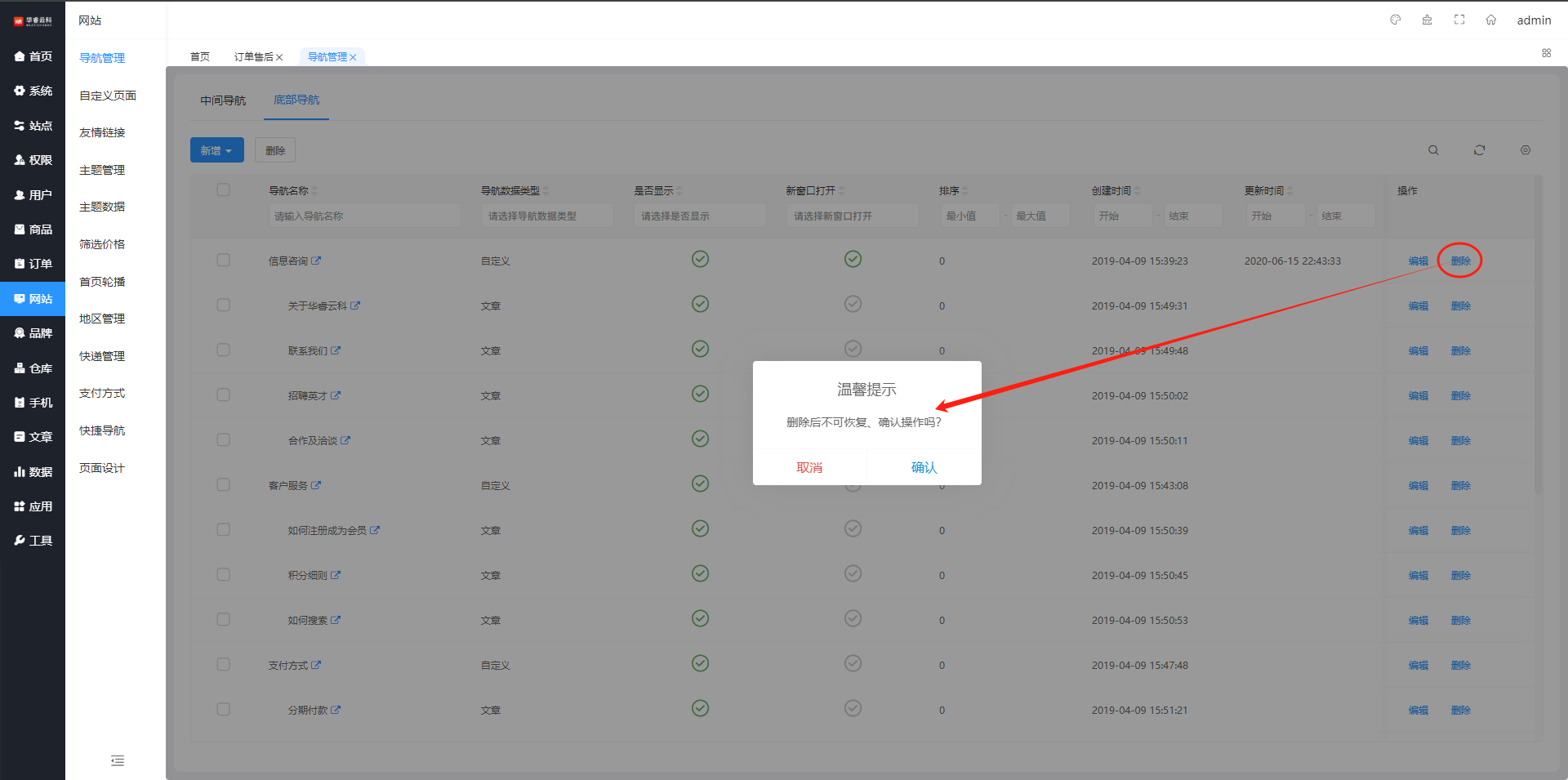 批量删除中间导航