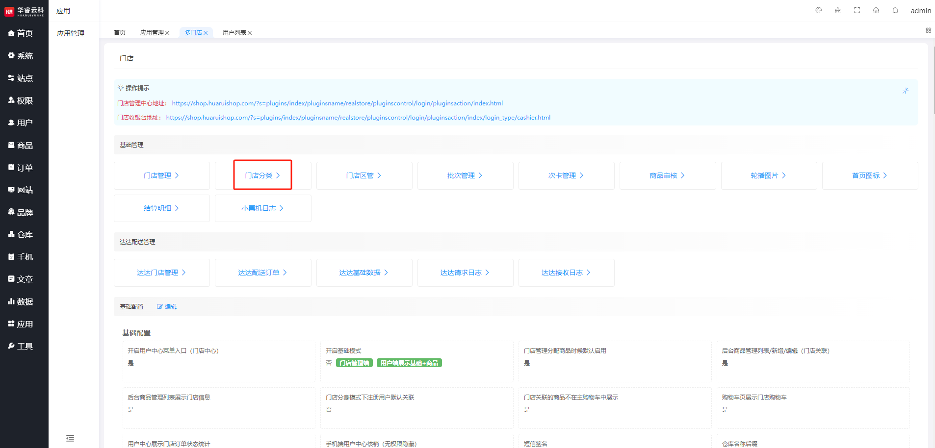 应用 → 应用管理 → 多门店 → 基础管理 → 门店分类 → 新增