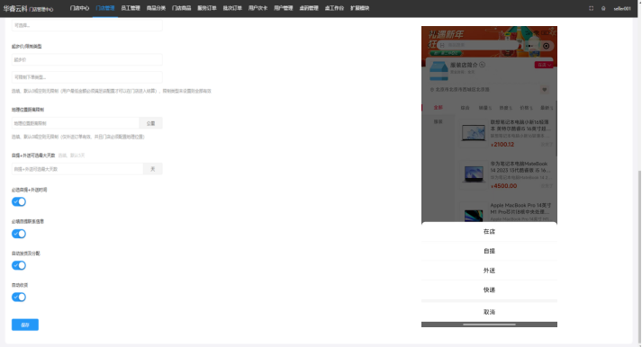 10.进入运营配置页面,当开关开启时,自提外送时间必选后才能提交订单,当关闭时,提交订单不受限制。运营配置10.png