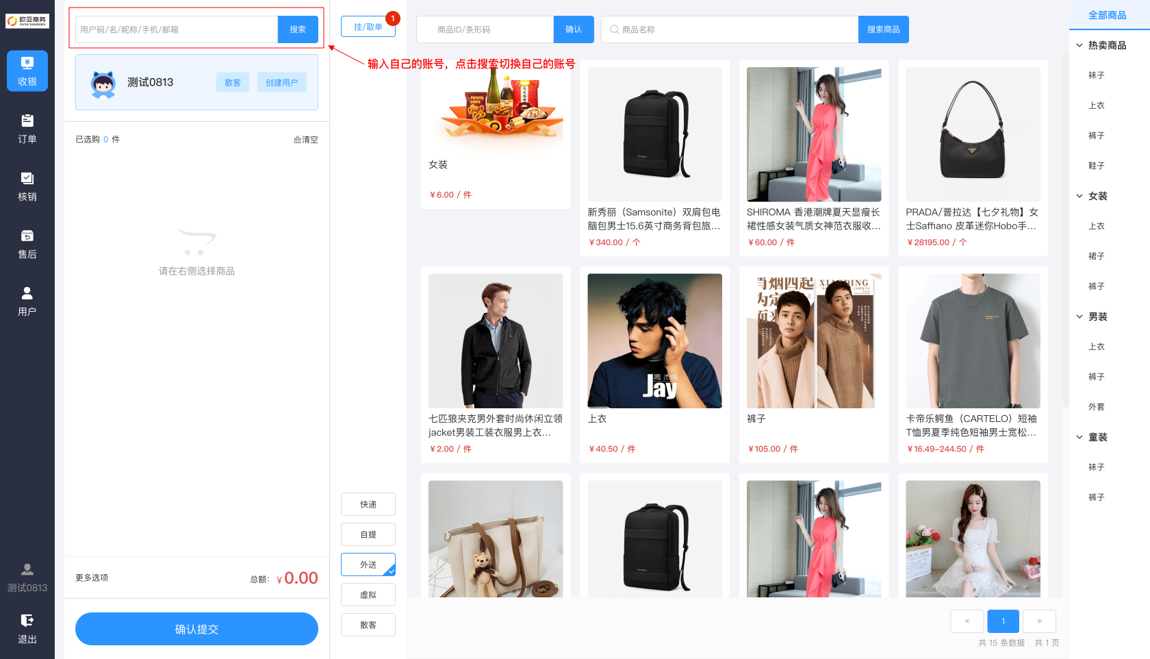 1.首先要切换成自己的账号,在页面顶部输入自己的账号,点击搜索切换完成。
