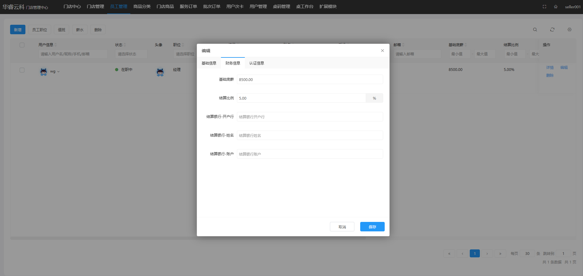 5.进入新增弹窗下一步操作,对基础信息模块和财务信息模块进行编辑修改后,完成新增操作流程。