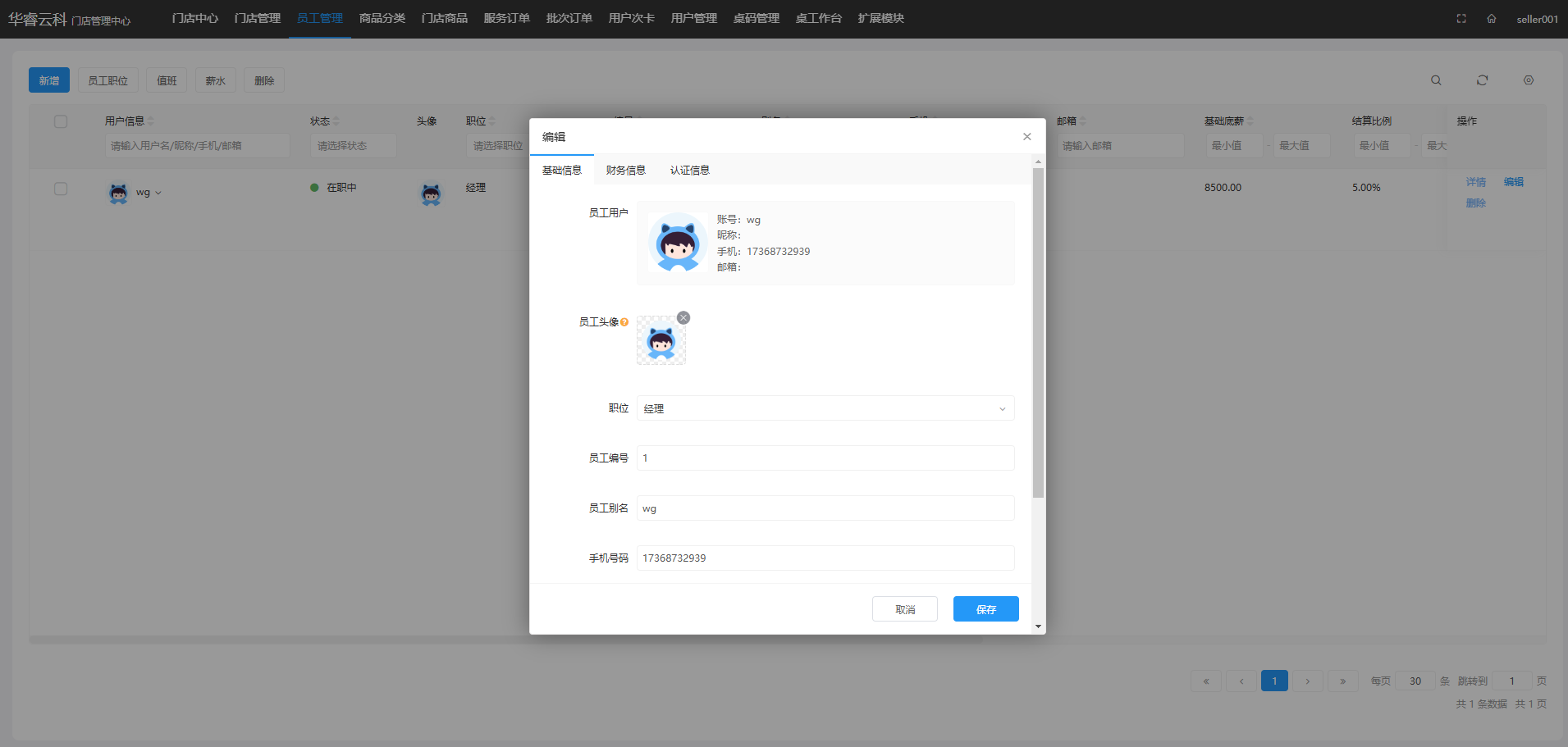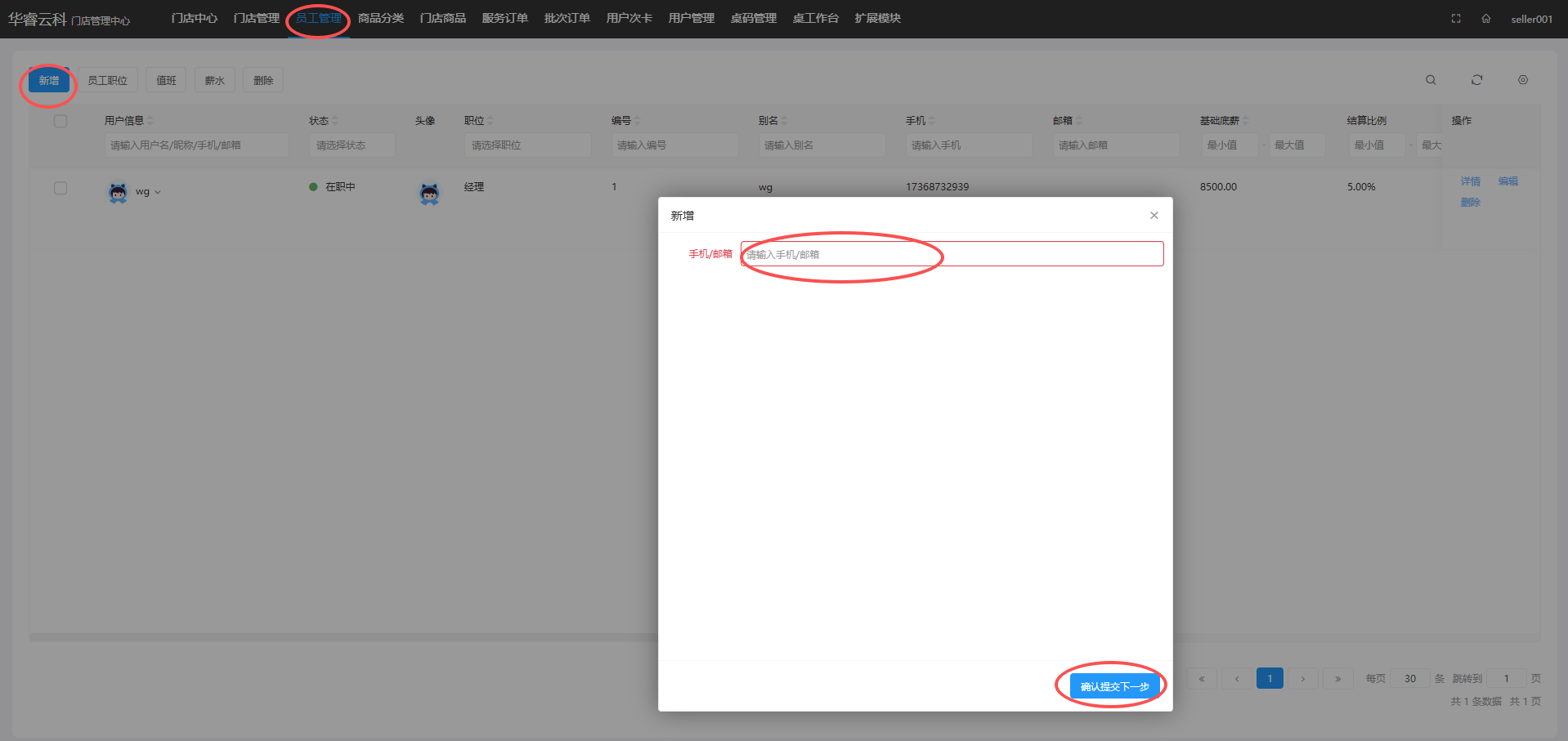 员工管理 → 新增
