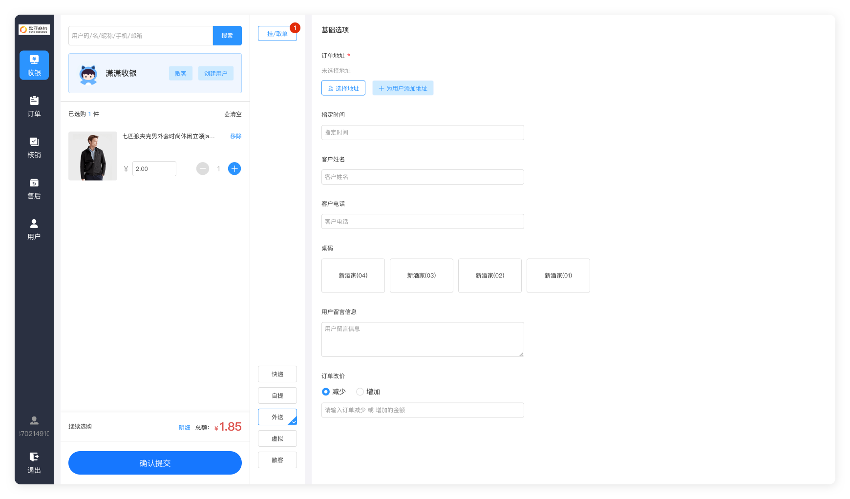 3.填写下单类型信息,填写完成后,点击确认提交按钮。 桌码配置 >>