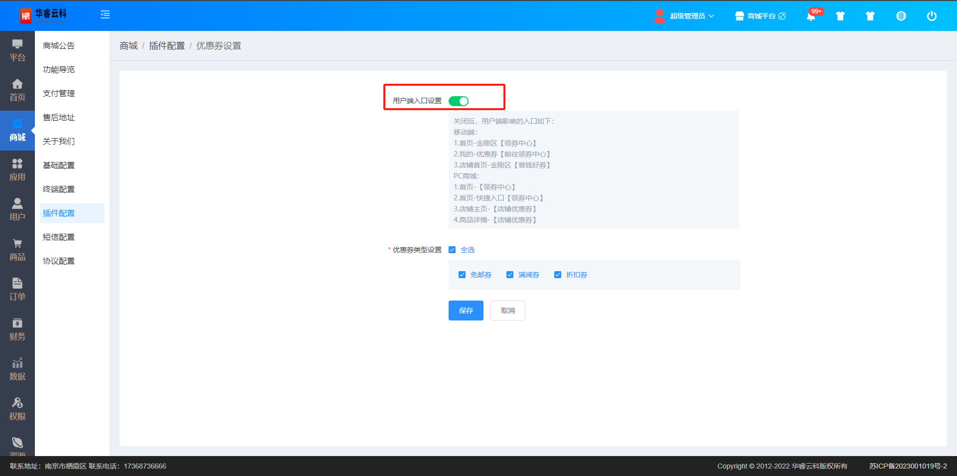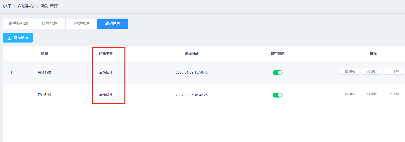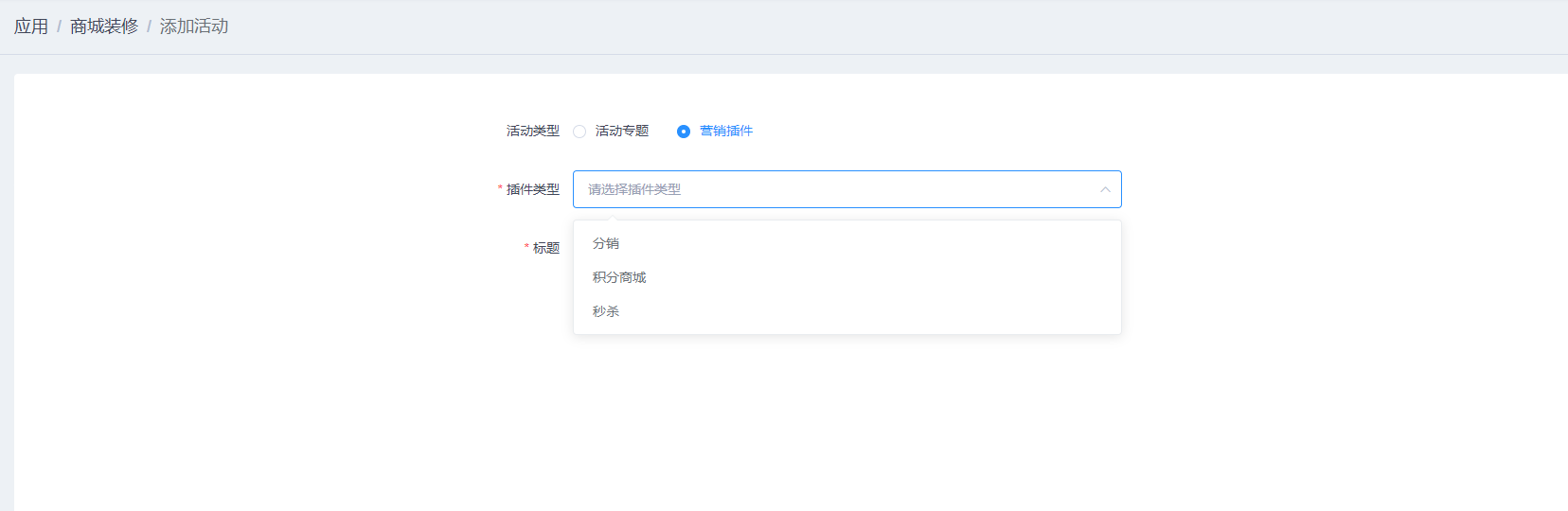插件类型:商城中的营销插件,只有对应营销插件开启后,营销活动才能选择。