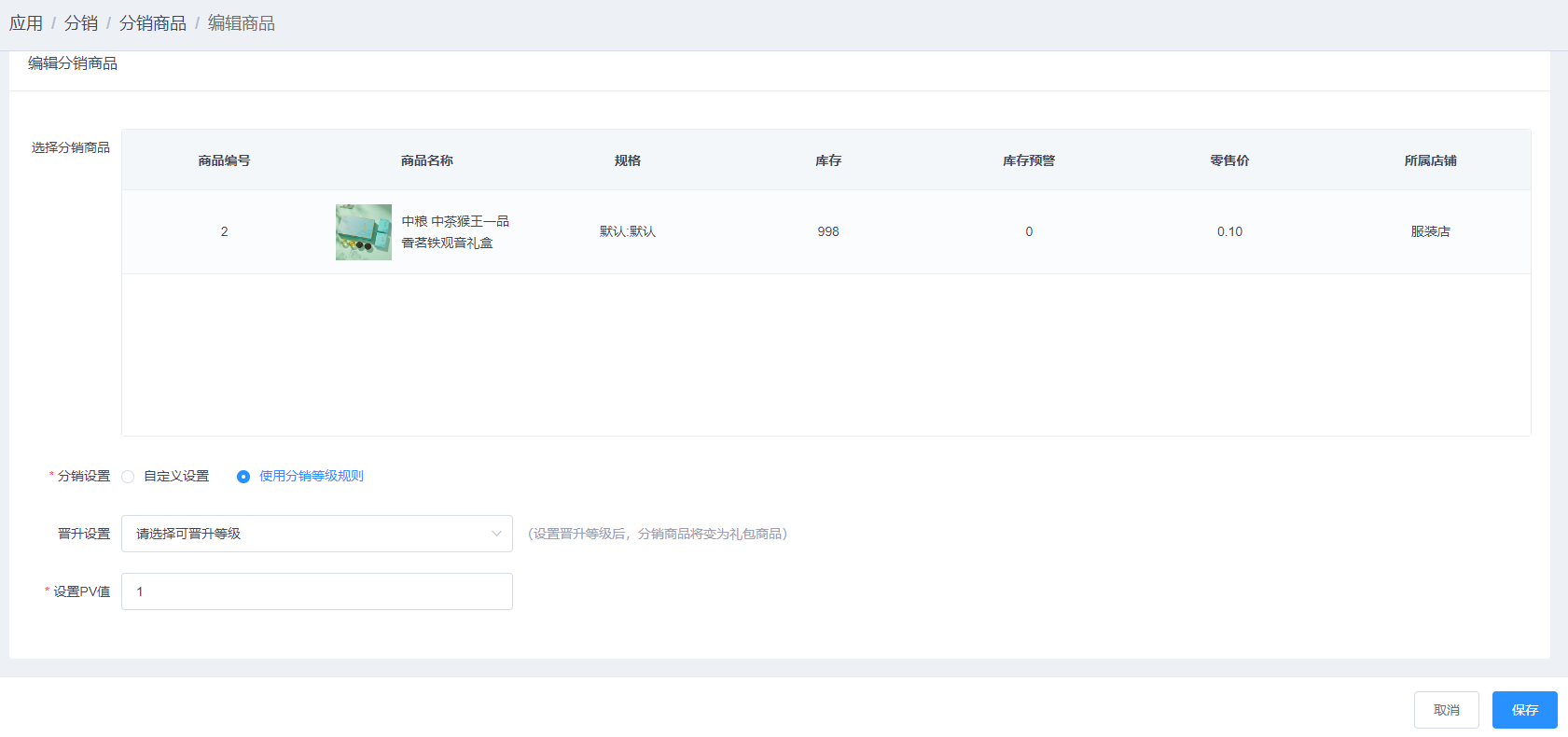 当佣金计算规则(详情见分销设置)配置为使用PV值进行计算时,分佣比例的基值以PV值进行计算