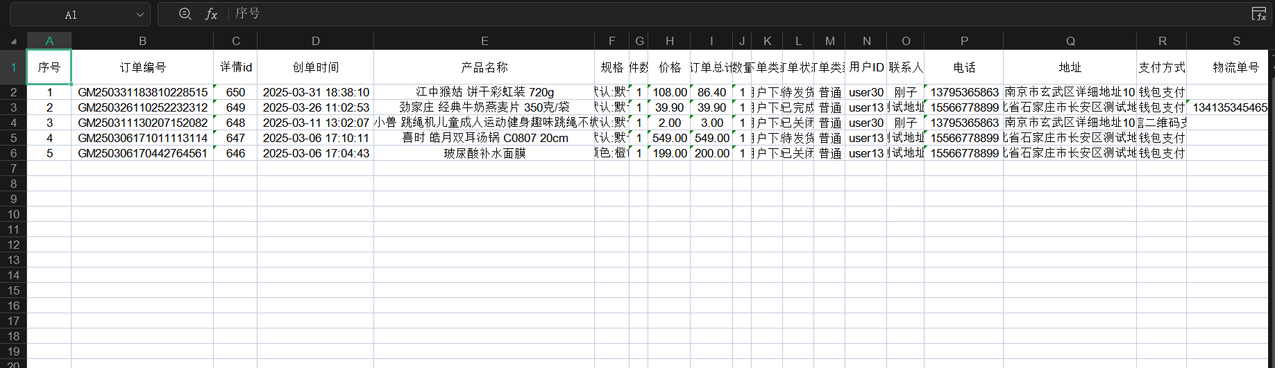 导出的数据以EXCEL文件格式存储下载,如图所示: