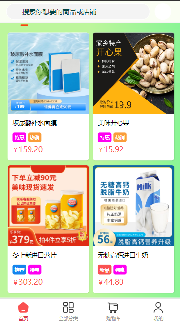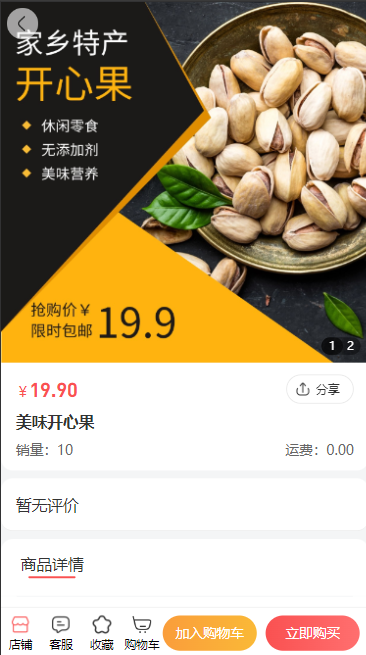 用户登录,进入商城首页或全部商品分类界面,选择需要购买的商品并点击,页面跳转至商品详情界面。