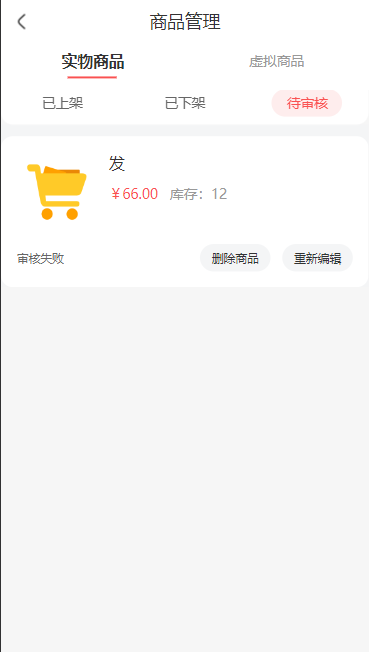 商家将商品提交审核后,平台审核拒绝,则商品状态为“审核失败”。