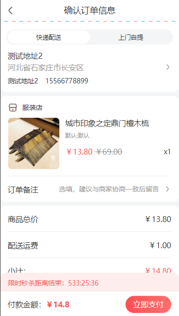 支付成功后会在“我的秒杀”->“待发货”页面呈现。