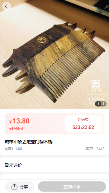 秒杀限购:针对某件商品,每个用户秒杀的上限,上限后立即秒杀按钮置灰,无法点击。具体上限数量通过应用-秒杀-秒杀设置;