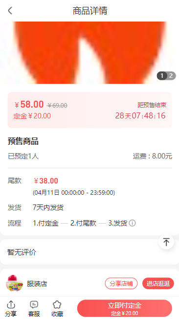 - 定金类型的商品,支付定金后需在一定时间内支付尾款,否则订单会自动关闭且不退定金。