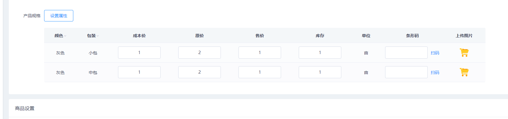 设置商品属性
