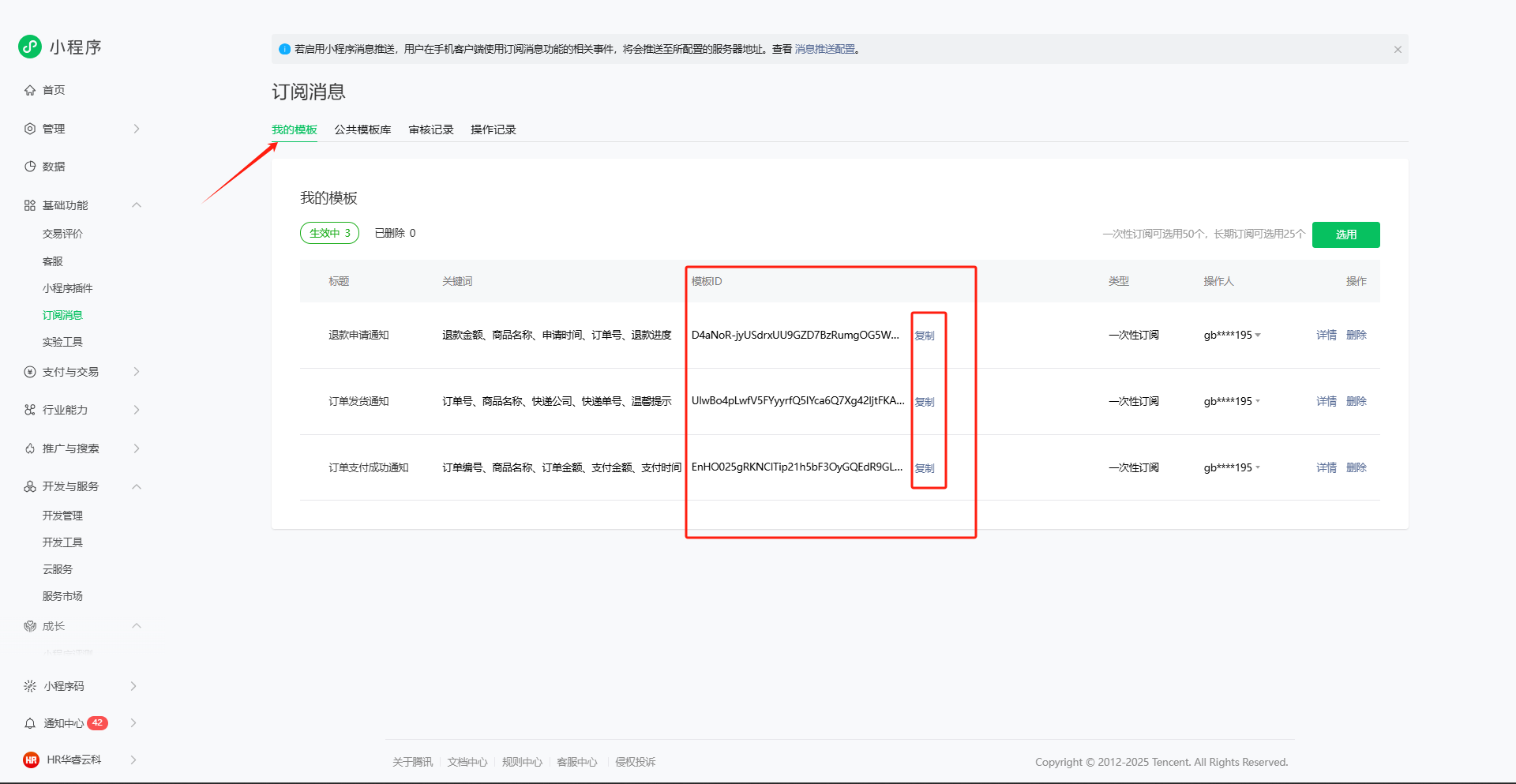 三、后台配置订阅消息