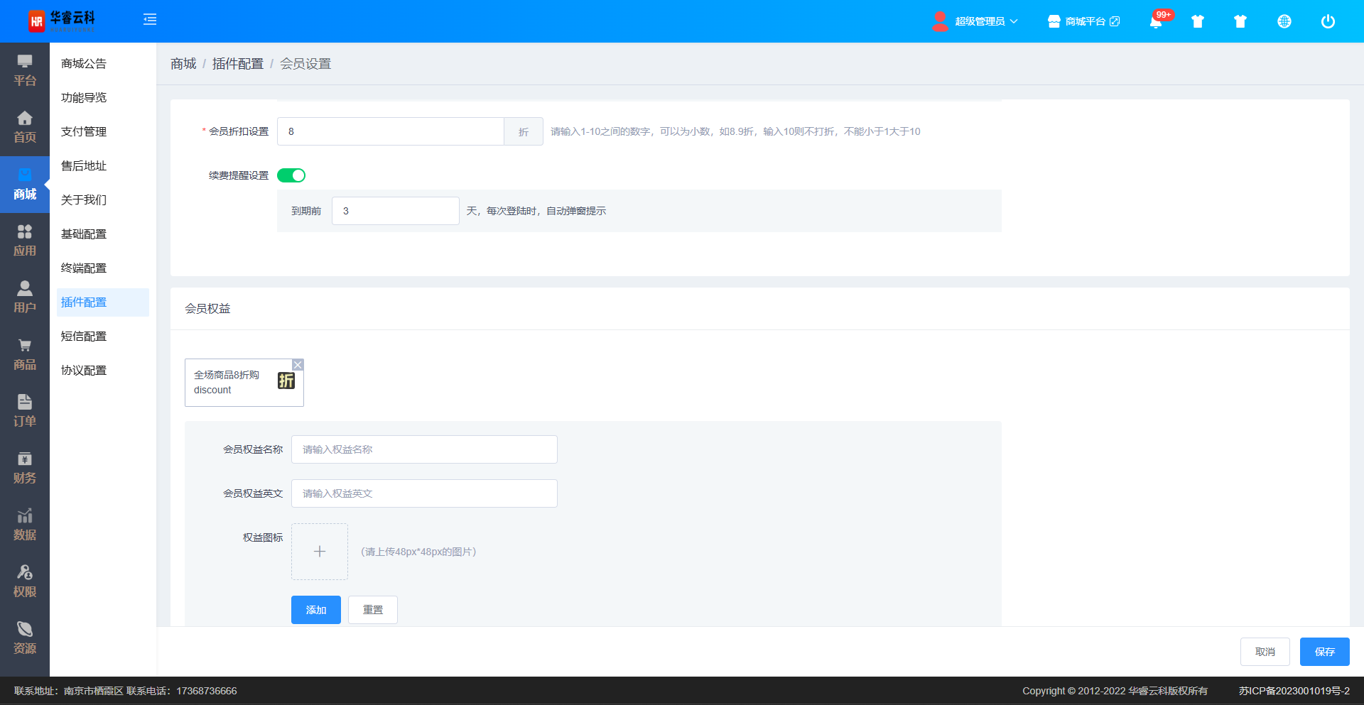 会员权益:会员多项权益设置。